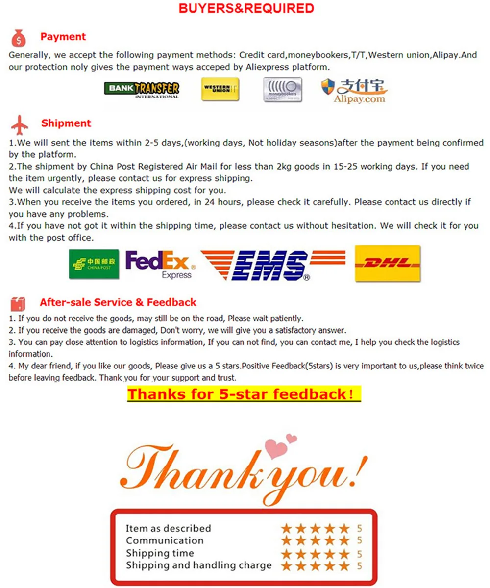 Los paquetes de nuestro almacén en China se enviarán por ePacket o EMS según el peso y el tamaño del producto. Los paquetes enviados desde nuestro almacén de EE. UU. Se envían a través de USPS.