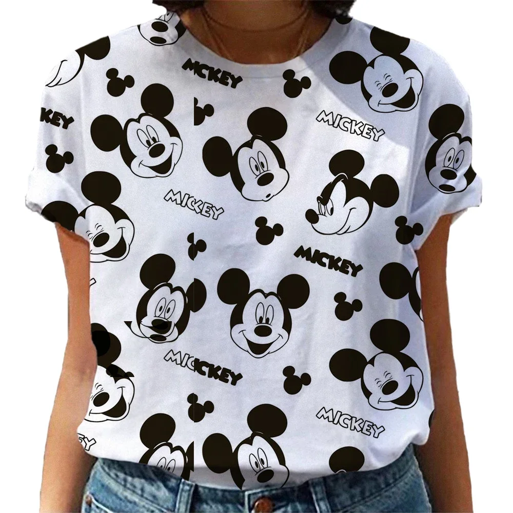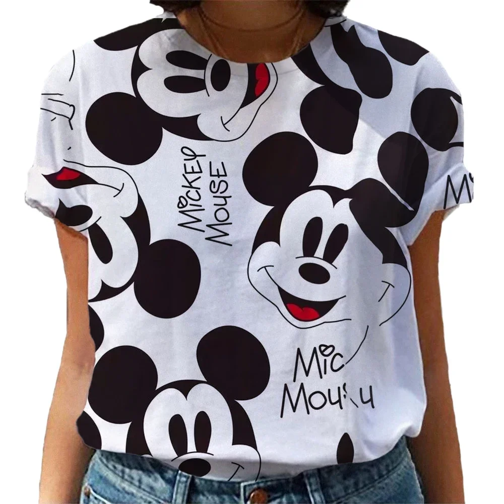 2024 Summer Short Sleeve O Neck Casual Fashion Clothing Tops Disney Mickey Mouse Girls T-Shirt 100-6XL Kawaii 3-14 Streetwear