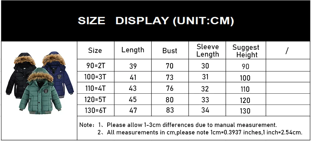 Note: 1.There is 2-3cm difference according to manual measurement.(1 inch = 2.54 cm)