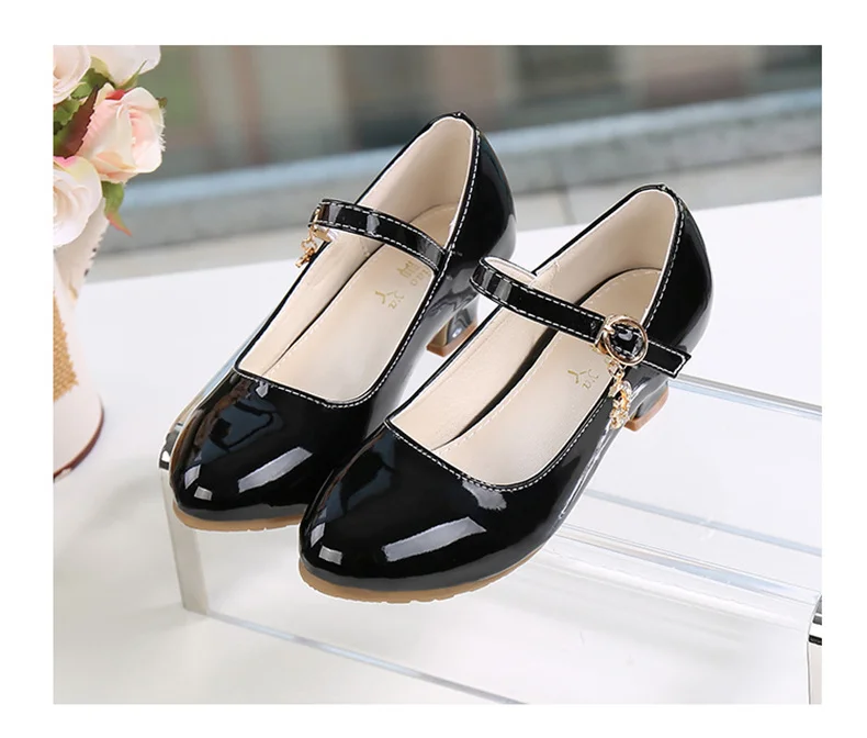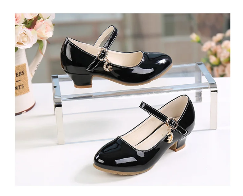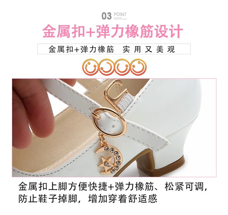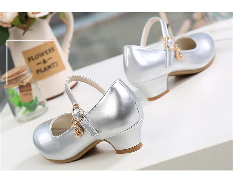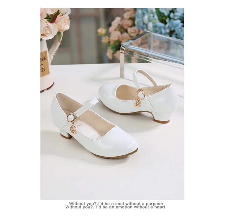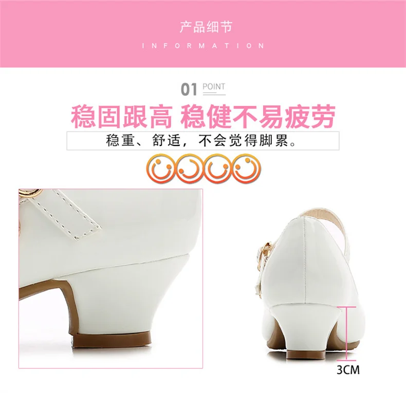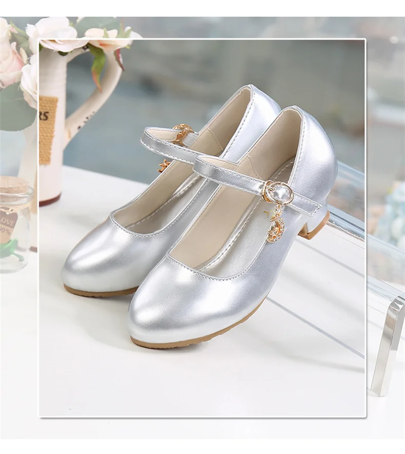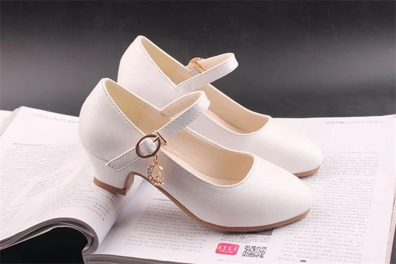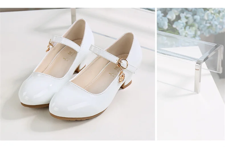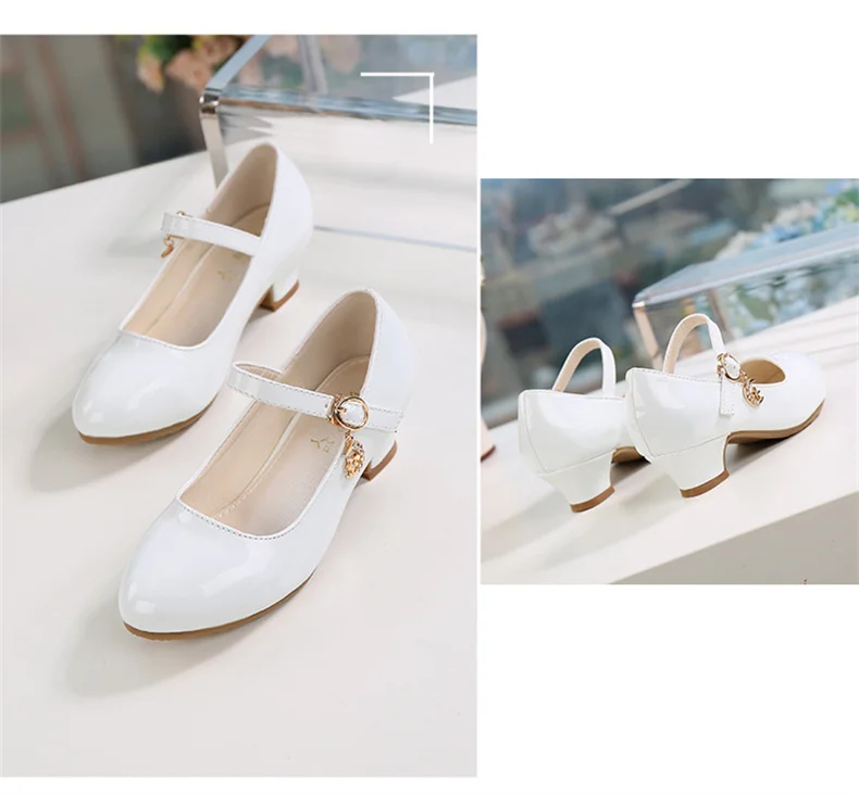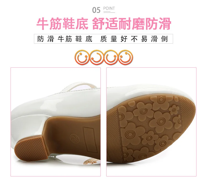 Children Girls Leather Shoes White Princess High Heel Shoes For Kids Girls Performance Dress Student Show Dance Sandals 28-41