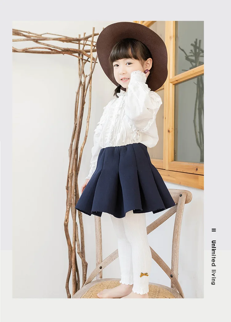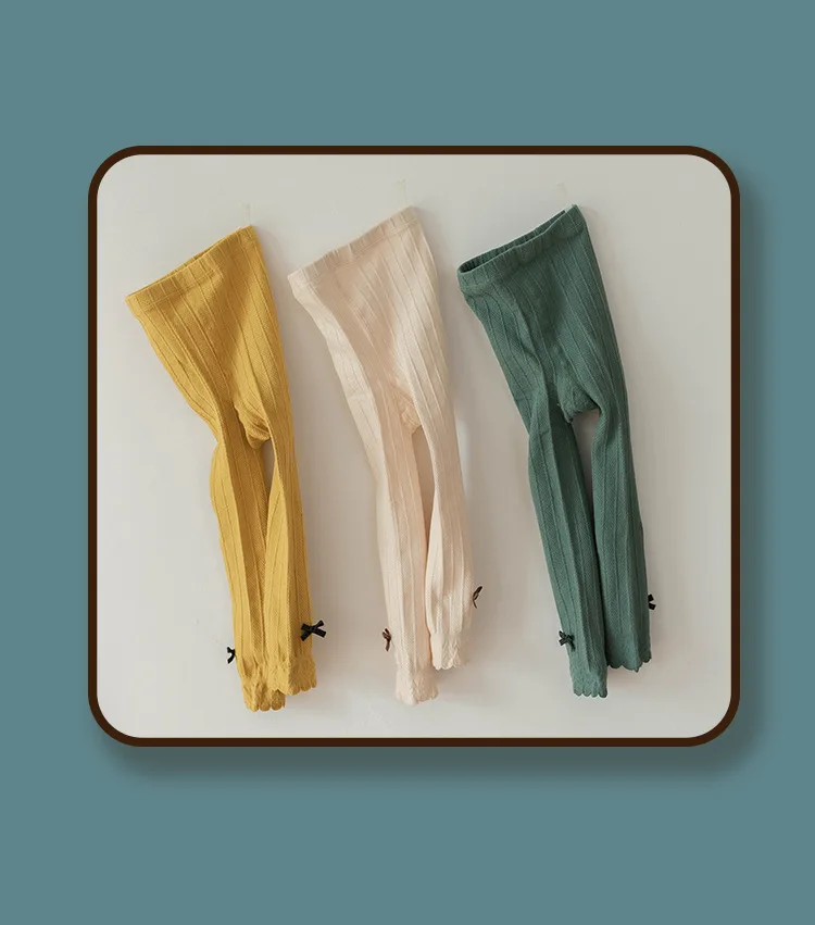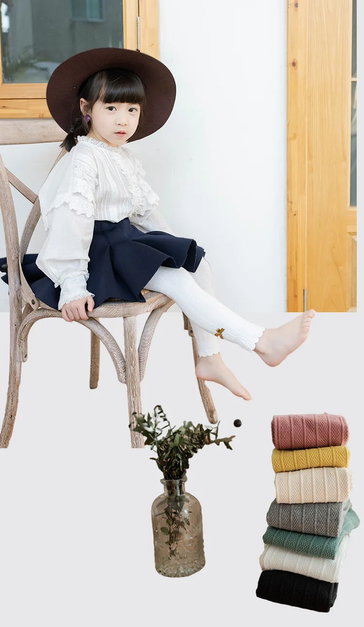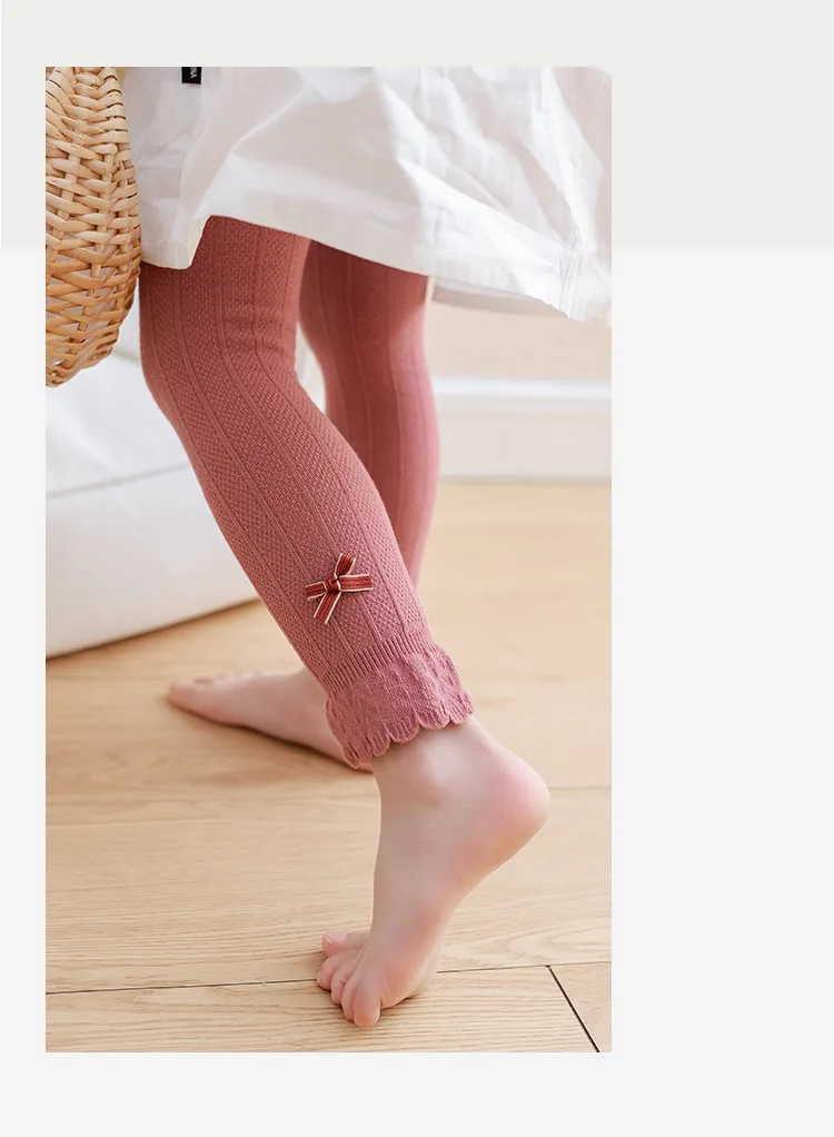 Children leggings spring and autumn period pantyhose baby girls stocking combed cotton knot falbala nine minutes of pants