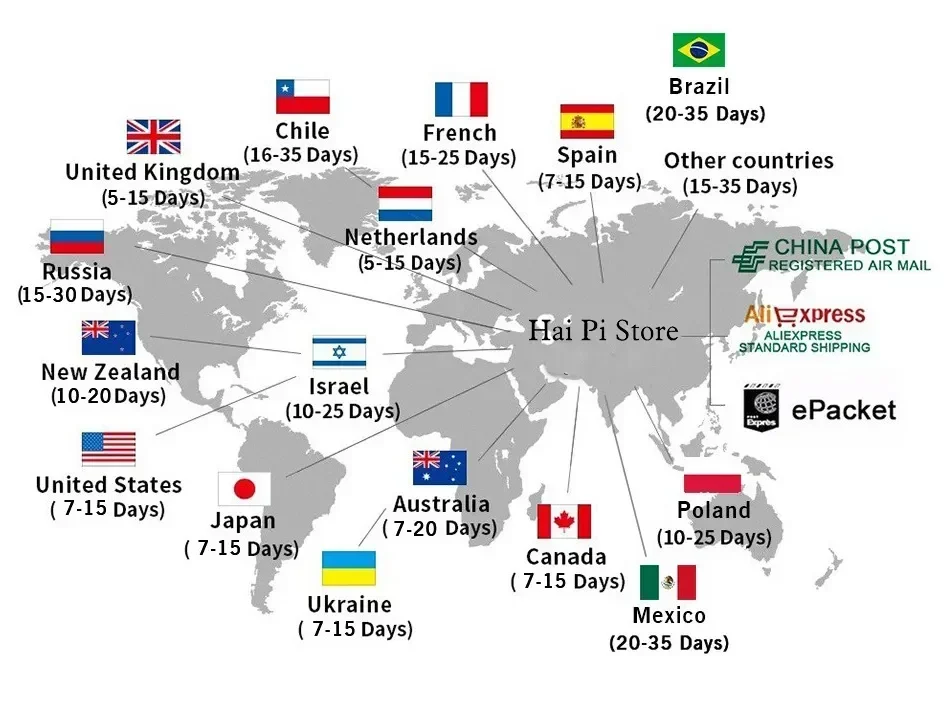 Los paquetes de nuestro almacén en China se enviarán por ePacket o EMS según el peso y el tamaño del producto. Los paquetes enviados desde nuestro almacén de EE. UU. Se envían a través de USPS.