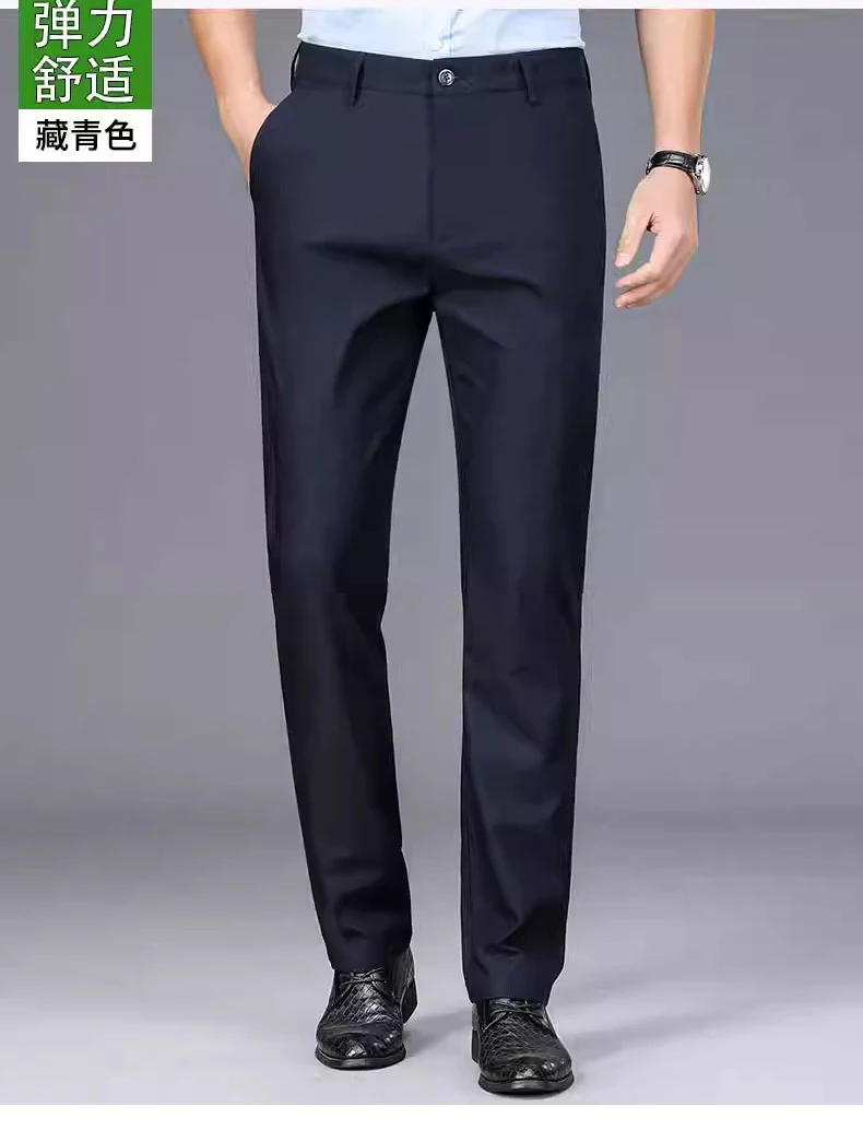 Male Smart Casual Pants Stretchy Sports Men’s Fast Dry Trousers Spring Autumn Full Length Straight Office Black Navy Work Pants