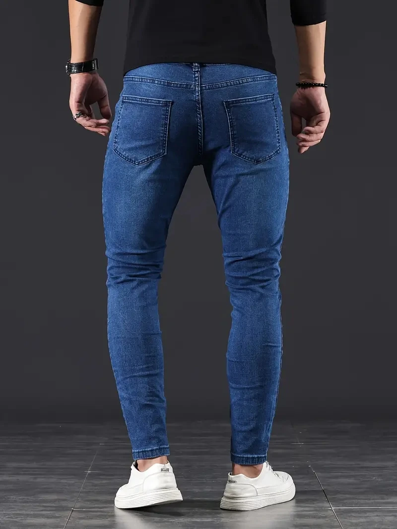 Mens Pants Pure Color Stretch Jeans Street Casual Slim Fit Trousers Male Vintage Wash Plus Size Skinny Jeans for Men