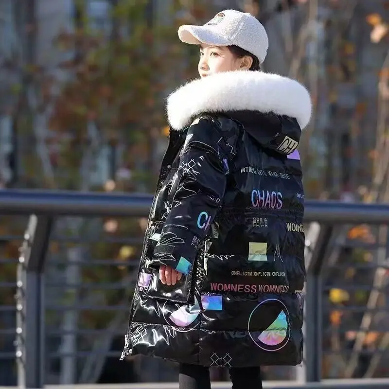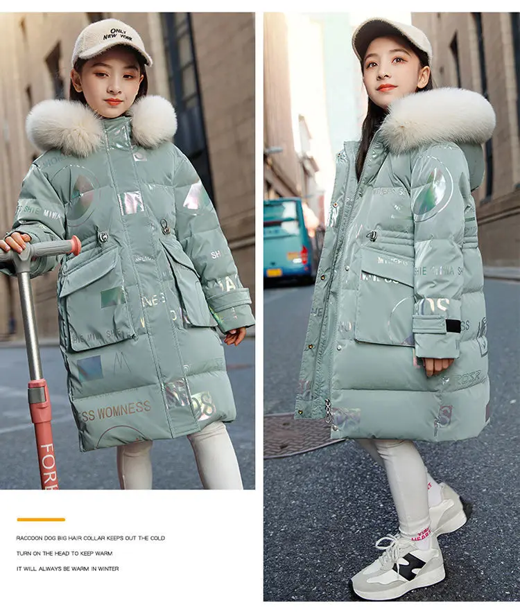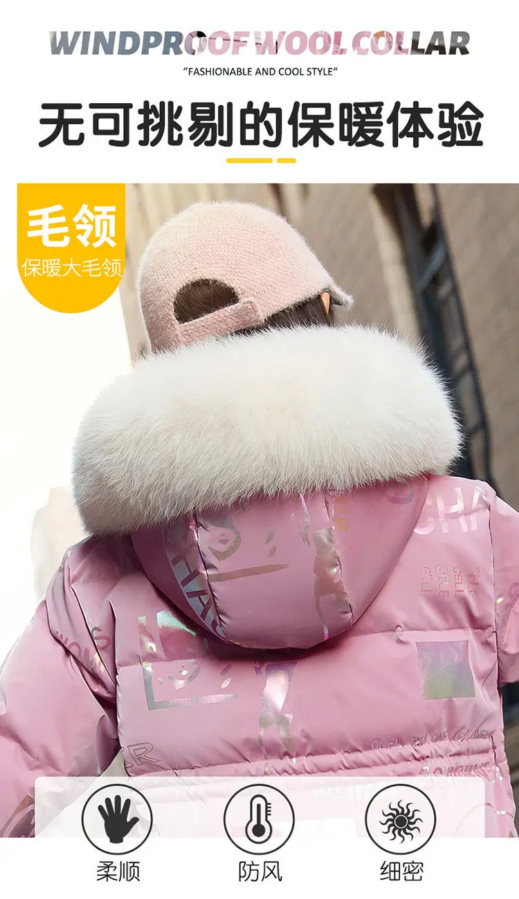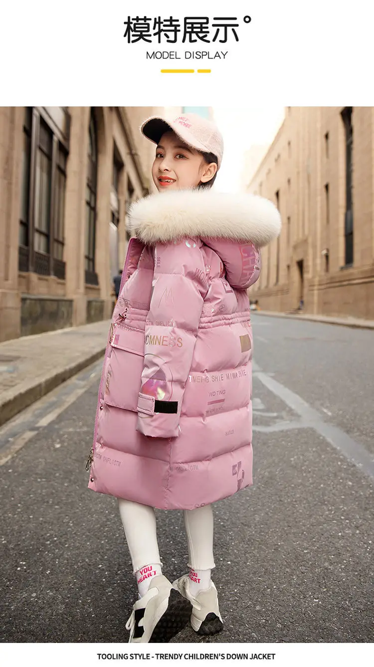 New 4-12 Years Fashion Winter Teenger Girls Jacket Hight Quality Heavy Keep Warm Large Fur Collar Hooded Coat For Kids