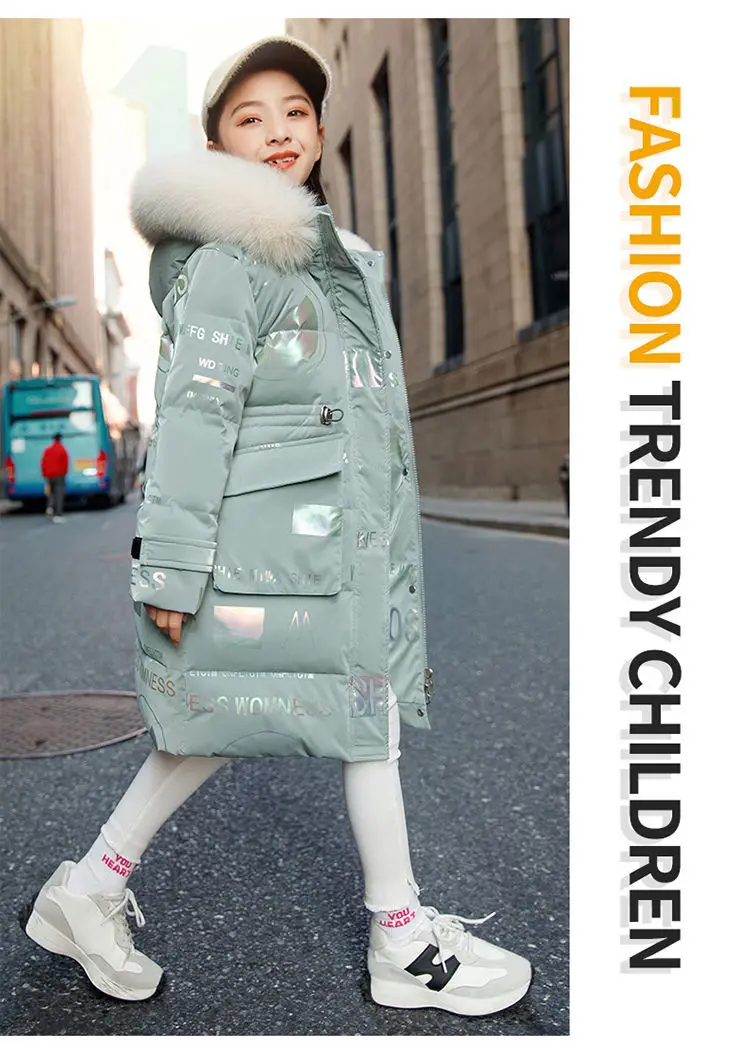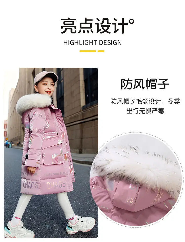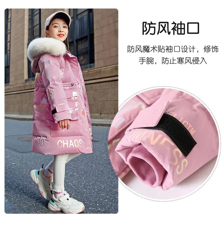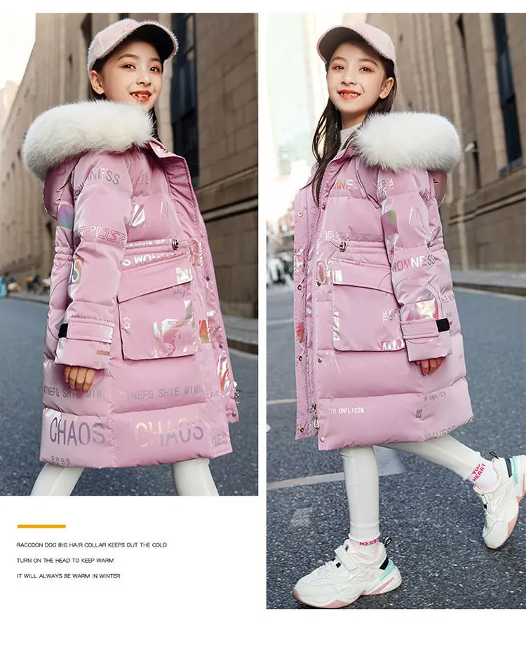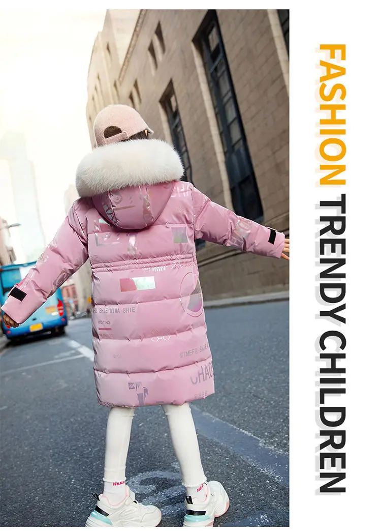 New 4-12 Years Fashion Winter Teenger Girls Jacket Hight Quality Heavy Keep Warm Large Fur Collar Hooded Coat For Kids