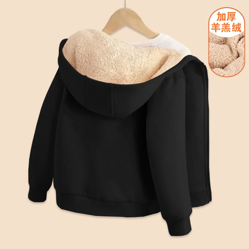 New Boys Girls Casual Jackets Kids Padded Thickened Lambwool Coats Children Warm Winter Hoodies Teenager Fashion Hooded Clothing