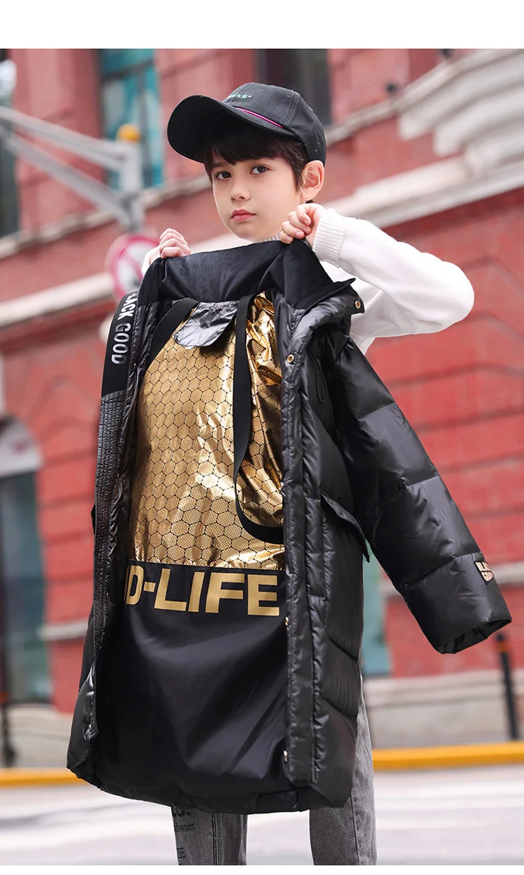 OLEKID 2025 Winter Children Down Jacket For Boys Thick Warm Waterproof Long Teenage Boy Outwear Coat 5-16 Years Kids Parka