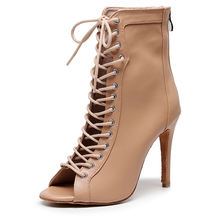 Women Ballroom Latin Dance Shoes Black Soft Bottom Bachata Salsa Dance Sandals Woman thin Heel 8.5cm/10cm/11cm Sock Boots